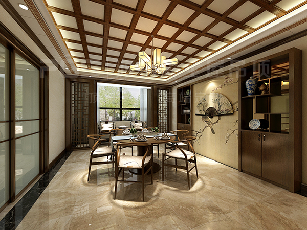 凹凸式吊頂是指具有凹入或凸出構造處理的一種吊頂形式,這種吊頂造型復雜富于變化、層資感強、適用于客廳、餐廳等頂面裝飾。