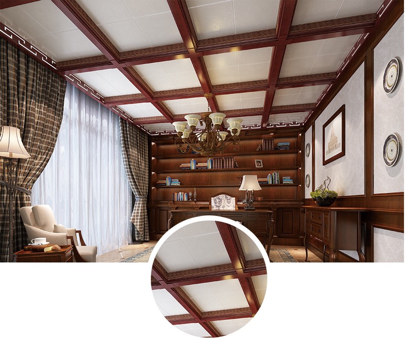 橫梁架構(gòu)交錯衍生的吊頂下是大大的落地窗