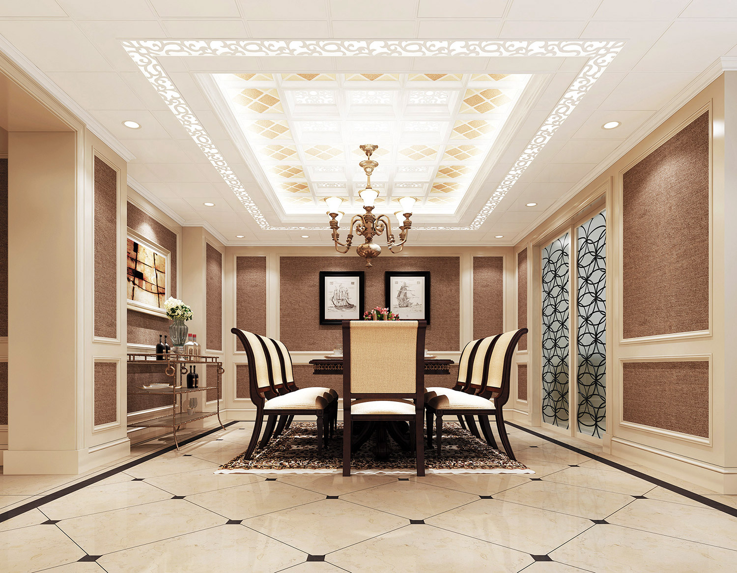 格勒吊頂可以讓頂面造型更加精美多樣,可以與室內(nèi)設(shè)計整體搭配出獨特的效果,增強視覺感染力,使頂面處理富有個性,從而體現(xiàn)